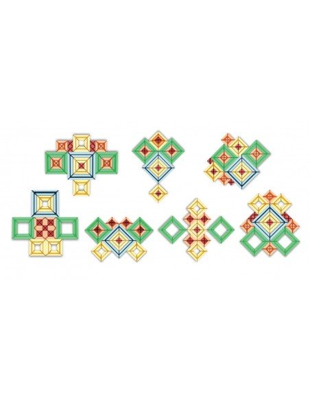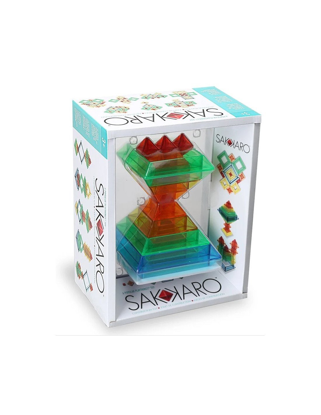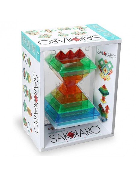 Sakkaro yra geometrinis žaislas, kuris neabejotinai sužadins vaikų kūrybiškumą! Permatomų spalvų žaidimo detalės, rodos, magiškai susijungia kartu, kai vaikai jas deda vieną ant kitos, grupuoja ir jungia. Atraskite begalinę įvairovę spalvingų figūrų ir raštų, kuriuos galite sukurti patys arba pasinaudoti idėjų knygele, kurioje rasite daugiau nei 100 spalvingų modelių ir formų, tikrai įkvėpsiančių Jus statyti. Dėl savo unikalumo ir įvairiapusiškumo, Sakkaro yra itin smagus užsiėmimas visai šeimai ir puikiai padeda vystyti smulkiosios motorikos įgūdžius, loginį mąstymą ir kūrybiškumą.