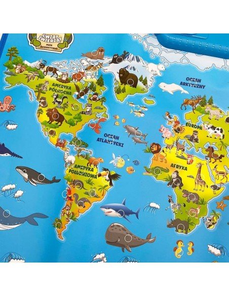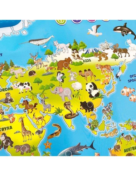 Interaktyvus kilimėlis lenkų kalba Pasaulio žvėrys, 56x41cm