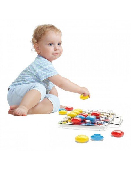 Pixel Baby – kurkite nuostabias mozaikas su 3 skirtingų spalvų ir 3 skirtingų formų mygtukais. Permatomoje lentoje yra skylutės, į kurias dedami mygtukai. Mygtukus labai lengva įdėti, tačiau jie puikiai laikosi savo vietoje. Kortelės su atkuriamais paveikslėliais dedamos kitoje pusėje, taip skatinant vizualinį suvokimą. Lentelės šonas suformuotas kaip rankena, todėl ją lengva nešiotis, bet ji taip pat originali ir stilinga.