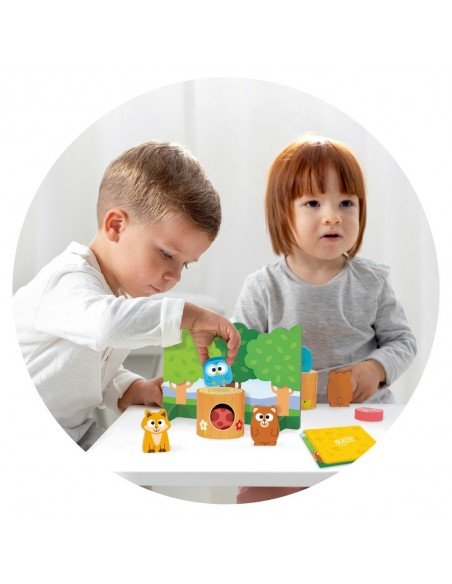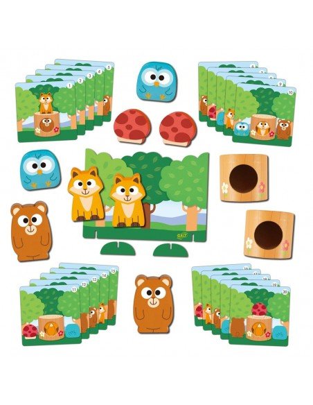 Nuostabus miško atminties žaidimas.Vaikai lavina savo atmintį taktiliniu būdu tyrinėjant gyvūnų padėtį 20 kortelių ir stengiasi atkurti scenas iš atminties.