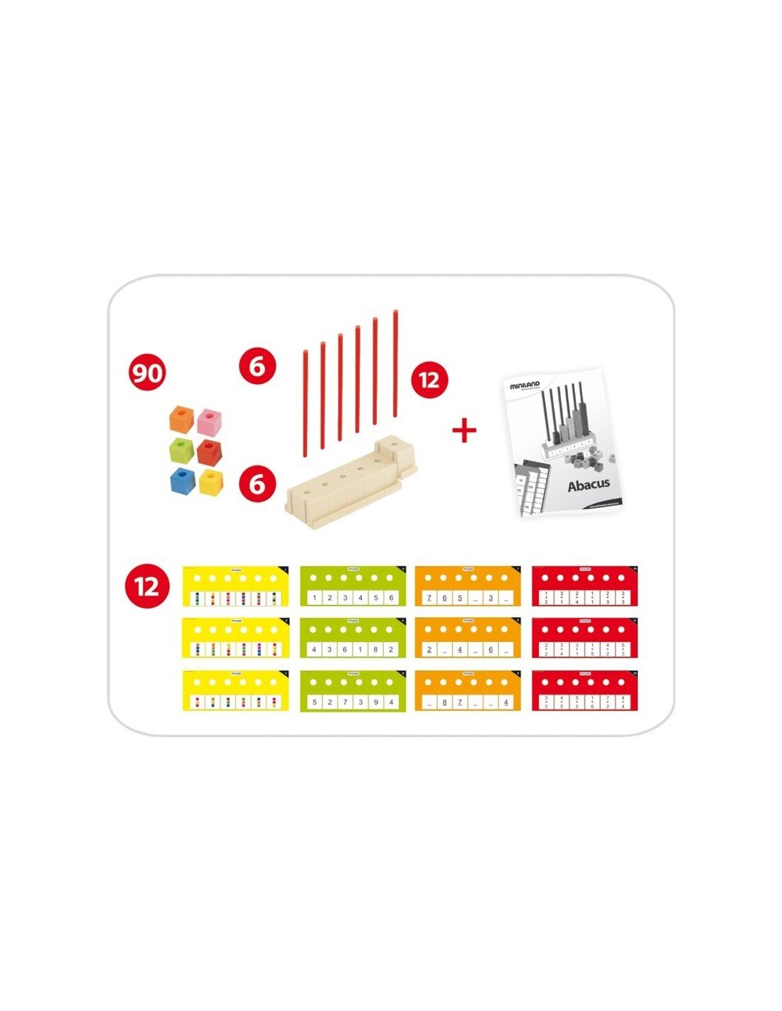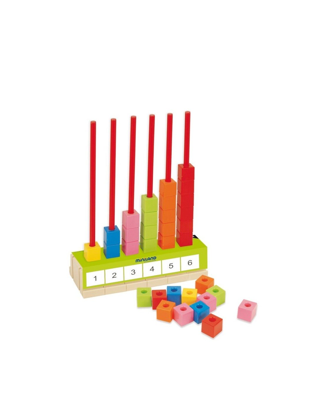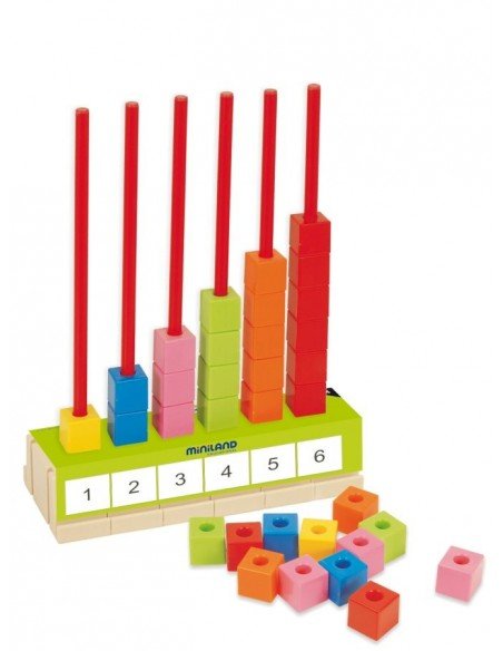 Šiame rinkiny sudeda 6 stulpeliai ir 90 kubelių. Žaidimas padeda vaikams išmokti pagrindines matematinius veiksmus. Jis yra labai funkcionalus - dalis galima nuimti ir pertvarkyti. Rinkinyje taip pat rasite mokymo instrukcija bei korteles su veiklomis.