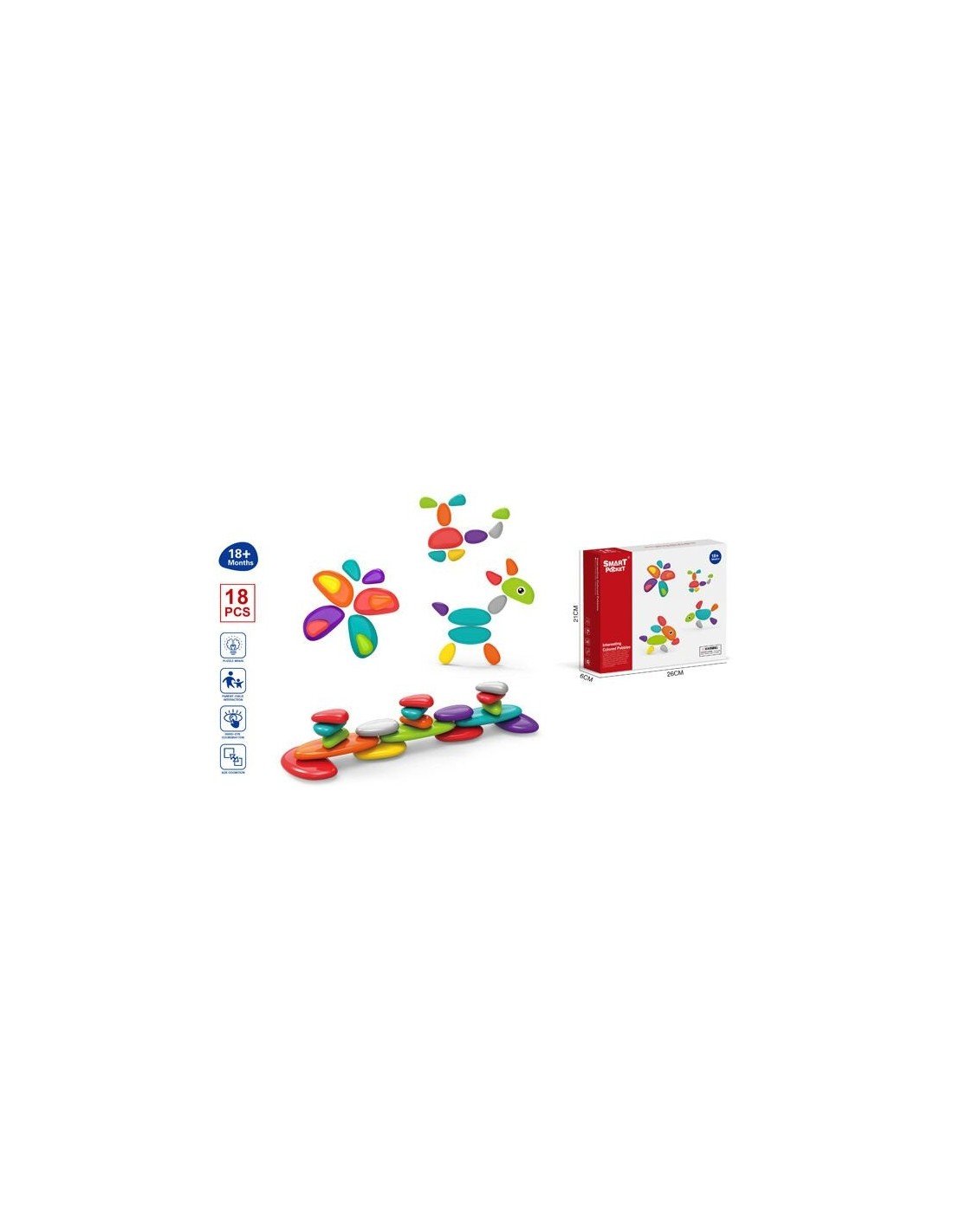 Balansojončių akmenukų (dydis 5-18cm) rinkinys, 18 vnt., 3 in 1, 1.5 - 5 m.